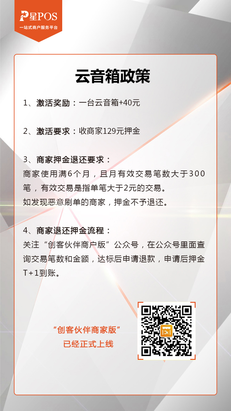 3.商家押金退还要求:商家使用满六个月,且月有效交易笔数大于300笔,有效交易是指单笔大于2元的交易。如发现恶意刷单的商家,押金不予退还。